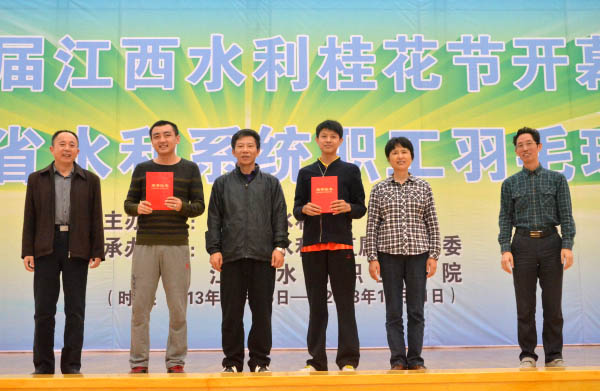 2013年10月20日,以“人水和諧,共筑中國夢”為主題的第七屆江西水利桂花節暨全省首屆水利職工羽毛球賽在江西水利職業學院順利閉幕。省水利廳副廳長羅小云、副巡視員周江紅、直屬機關黨委專職副書記張伯義、江西水利職業學院院長曾亞東出席閉幕式并為運動員頒獎;閉幕式由省水利廳直屬機關工會副主席池曉虹主持。