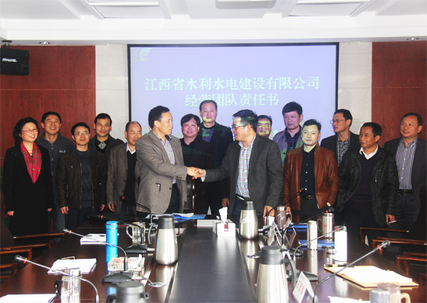 2015年4月11日,江西省水利水電建設(shè)有限公司2015年度國(guó)內(nèi)經(jīng)營(yíng)團(tuán)隊(duì)業(yè)績(jī)責(zé)任書(shū)簽字儀式在公司總部星河國(guó)際22樓會(huì)議室舉行。公司總經(jīng)理徐洪良分別與公司經(jīng)營(yíng)層高管、部門(mén)負(fù)責(zé)人簽訂了2015年度國(guó)內(nèi)經(jīng)營(yíng)團(tuán)隊(duì)業(yè)績(jī)責(zé)任書(shū)。