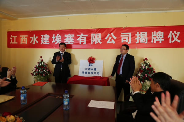 2015年4月26日埃塞當地時間上午10點,江西水建埃塞有限公司在埃塞舉行揭牌儀式。公司董事長王元旦、總經理徐洪良、副總經理兼海外公司執行董事張周平、副總經理兼海外公司總經理黃鄭民、副總經理王俊華等領導及在埃員工參加了揭牌儀式,公司董事長王元旦和埃塞有限公司總經理王毓平共同為埃塞公司揭牌并致辭。