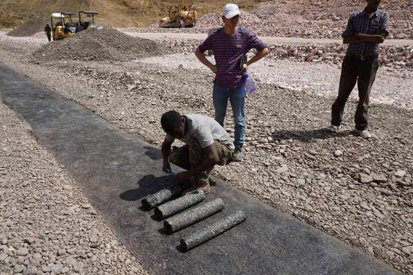 公司高度重視Wolkite瀝青混凝土芯墻的建設,成立了以黃生寶為經理的項目組領導班子,選派了一批技術過硬、經驗豐富、善于學習的技術和操作人員,并從國內專門聘請從事該方面工作的專家親赴現場進行技術指導和把關。在公司董事會的正確領導下,項目部全體成員緊緊圍繞著Wolkite瀝青混凝土芯墻項目全力施工。本著特事特辦的原則,國內后勤組緊急采購發送了一大批施工設備,為項目開好頭打下了堅實的基礎。為了優質高效地完成任務,項目組全體人員精誠團結、夙興夜寐,不計白天黑夜,不管分內分外,取得的成果得到了業主和監理的肯定。從制定施工方案和技術指標,到裝配實驗儀器和施工設備,從悶熱的室內配合比工作,到烈日炎炎下的現場施工,無不凝結著大家的智慧與汗水。
