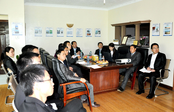 集團(tuán)資訊 當(dāng)?shù)貢r(shí)間2015年7月16日,中國(guó)駐肯尼亞經(jīng)濟(jì)商務(wù)處參贊郭策一行到我司肯尼亞分公司調(diào)研。肯尼亞分公司總經(jīng)理賀翔、副總經(jīng)理彭紅軍及相關(guān)人員迎接并陪同調(diào)研。