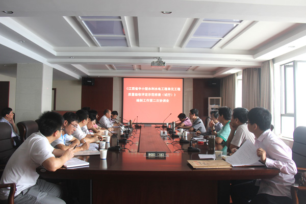 2014年5月30日下午,江西省水利廳水利工程建設質量與安全監督中心站在我公司主持召開了《江西省中小型水利水電工程單元工程施工質量驗收評定示范樣表(試行)》編寫組第二次協調會,參加會議的單位還有江西贛禹工程建設有限公司、江西省源河工程有限責任公司、江西省水利工程監理有限公司、江西省建洪工程監理咨詢有限公司、上饒市水利水電工程建設監理中心、江西省水利廳基本建設工程質量檢測中心站、上饒市水利工程質量檢測站、江西省水利規劃設計院、江西省建材產品質量監督檢驗站。會議的主題是討論修改并通過《示范樣表》編制大綱(第二稿)。