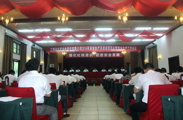 為響應江西省水利廳《關于開展2014年水利安全生產月宣傳活動》精神要求,牢固樹立“以人為本”的科學發展觀,2014年6月22日,公司在南昌召開了2014年安全生產月啟動發布會暨安全生產工作會議。省水利廳黨委書記、廳長孫曉山,副廳長廖瑞釗到會指導,公司黨委書記、董事長兼總經理王元旦等高層領導,公司中層管理人員,各專業公司、分公司及施工項目部的主要負責人、技術負責人、專職安全員共100余人參加了會議。公司黨委副書記王延軍主持會議并宣布安全生產月啟動。