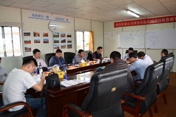 8月8日下午,董事長王元旦一行與雙河房地產項目全體員工進行座談。該房地產項目定位于東非國際級商務中心,總建筑面積830,000平方米。項目經理廖會文、彭紅軍分別做了一期、二期建設情況進行匯報。根據一期進展情況,王元旦董事長要求項目部牢固樹立“質量是企業的第一形象,質量是企業的生命”的理念,堅持“安全第一,預防為主,打造精品工程”的戰略方針。針對二期項目工作匯報,王元旦董事長充分肯定了項目工作進展,他指出,項目全體員工不僅要有“只許成功,不許失敗”的信心和決心,更要做到以下幾點:一是進一步加強文明施工,展示我公司所代表的中國施工企業的企業形象和企業文化;二是高度重視工程質量和安全生產,將質量和安全當做頭等大事來對待;三是抓好長遠目標規劃,做好事前、事中、事后三重控制;四是做到“團結、高效、管理”,確保項目部的規范化運行。