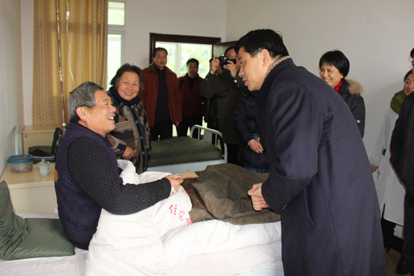 隨后,孫廳長一行又來到生活基地職工醫院慰問。在病房內,孫廳長看望了躺在病床上的兩位退休老職工,詳細詢問了老人的病情,希望他們安心治療、早日康復,并送上慰問金。在聽取職工醫院負責人對醫院工作情況的匯報后,孫廳長指出,公司有義務也有責任讓離退休職工老有所養、病有所醫,職工醫院要更新理念,加快改革步伐,壯大醫療技術隊伍,更好地解決離退休職工醫療保健問題。