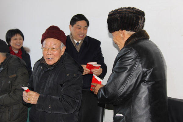 寒冬臘月,雪花飛舞。1月20日下午,水利廳黨委書記、廳長孫曉山率廳人事處處長周江紅、廳離退休干部處副調研員金光榮、曾三榮一行4人冒著嚴寒來我公司生活基地慰問離退休職工。公司董事長總經理王元旦、黨委副書記王延軍、生活基地管理處相關負責人陪同慰問。
