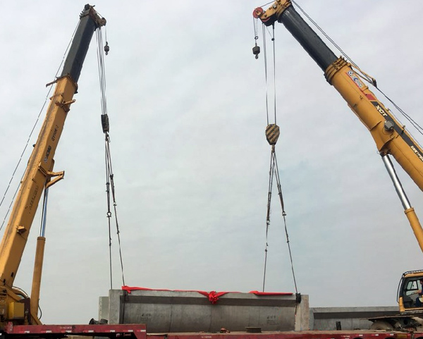 廖坊灌區(qū)二期工程PPP項目為國家“十三五”期間172項重大水利工程之一,也是我公司首個“PPP” 項目;總投資12.9億,其中建安投資7.83億。2018年1月15日上午十時許,在業(yè)主、監(jiān)理等參建單位人員的注視下,伴隨著禮炮的轟鳴,下幕塘渡槽順利完成了首跨槽身的吊裝。首跨渡槽的吊裝為項目的按期完成打下堅實(shí)基礎(chǔ),同時也為我司積累了現(xiàn)代化裝配式建筑的施工經(jīng)驗。