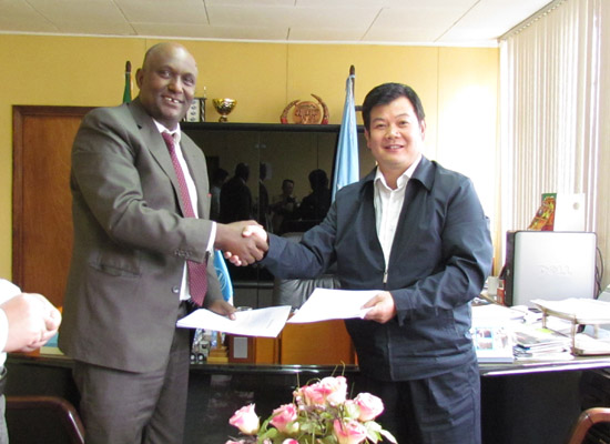 董事長總經(jīng)理王元旦與埃塞尤卡公司總經(jīng)理abebe簽訂技術(shù)合作協(xié)議