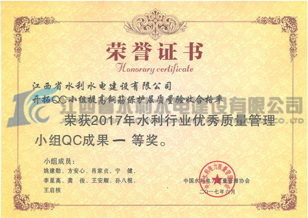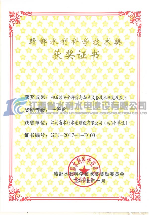 金杯銀杯不如老百姓的口碑。十年來,公司始終以項目管理為核心,以過程控制為主線,以質量安全為重點,以品牌形象為抓手,努力鑄造精品工程,滿足社會需要,實現社會價值。十年來,公司共有  12項QC成果,獲省部級獎項;有 7項工法獲得省部級工法,2項科研項目研究獲贛鄱水利科技一等獎;填補了歷史空白,有力的提升了企業的核心競爭力。十年來,公司承建的贛撫大堤加固配套工程和長江大堤防洪工程榮獲“大禹獎”,數十個項目榮獲全省水利優良工程獎,5個項目被水利部評為文明工地,榮獲水利部首一批安全生產標準化施工企業和信用等級AAA企業。