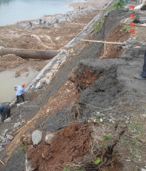 ①土石結(jié)合部的土料填筑質(zhì)量(壩體與溢洪道、與山體);砌體、砼結(jié)構(gòu)、山體與土體之間必須設(shè)置截水墻!例:新疆聯(lián)豐水庫
