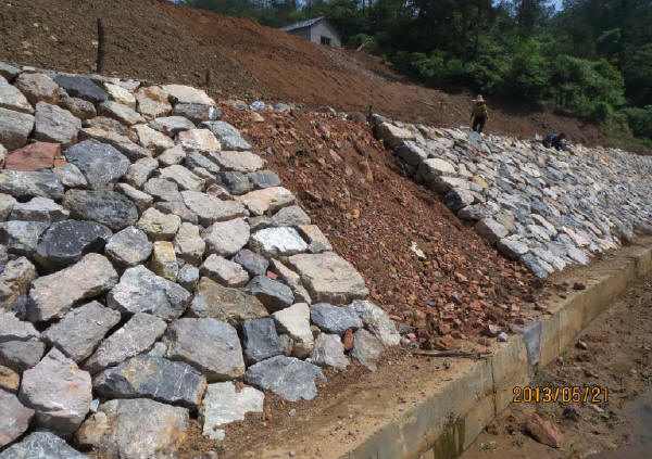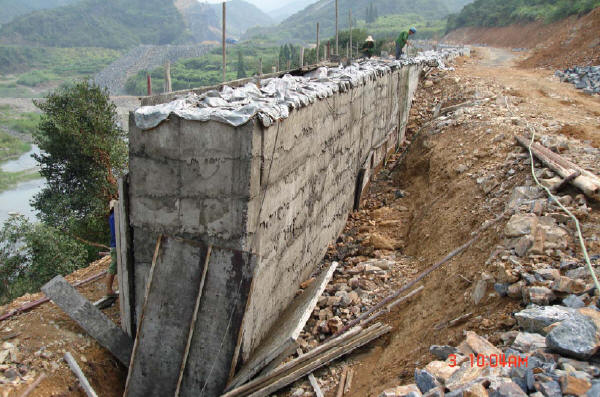 擋墻砌筑應(yīng)分層,每一砌筑層擺石時均應(yīng)座漿,隨鋪漿隨砌筑。嚴禁石塊大面無漿直接貼靠。混凝土必須用振搗器逐縫振搗。當豎縫寬度在5cm以上時,可填漿后塞片石。嚴禁先堆砌石塊再用膠結(jié)料灌縫。