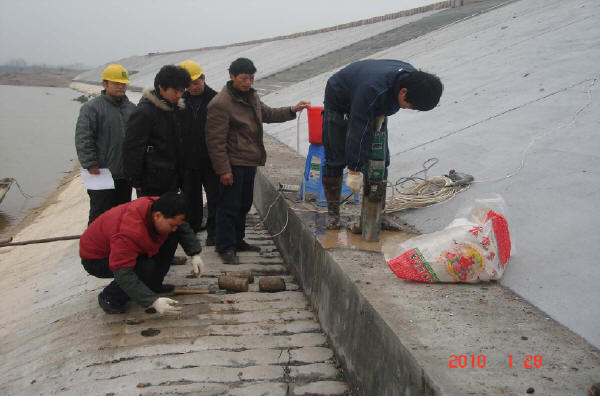 ※ 重點檢查水庫的險情是否已按設(shè)計要求給予消除;工程質(zhì)量是否按規(guī)定檢驗,各項檢測數(shù)據(jù)是否滿足設(shè)計要求或相關(guān)標準:土方的壓實度、滲透系數(shù);混凝土(含預制塊)的抗壓強度、抗凍、抗?jié)B、彈性模量;砂漿的抗壓強度;灌漿的壓水試驗結(jié)果(透水率Lu):固結(jié)灌漿≮5%、帷幕灌漿≮10%。